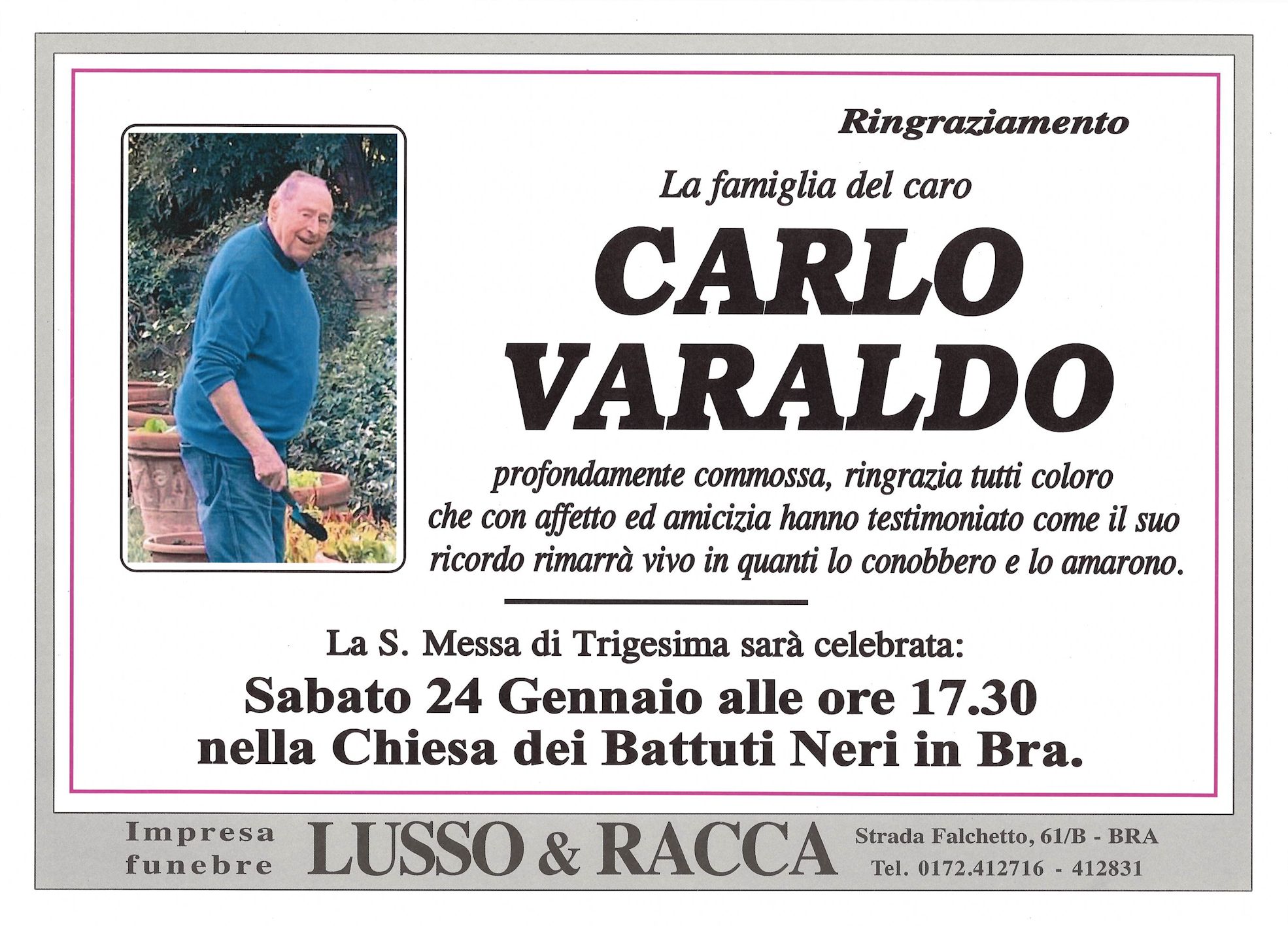 I familiari ringraziano anticipatamente tutti coloro che parteciperanno alla cerimonia funebre