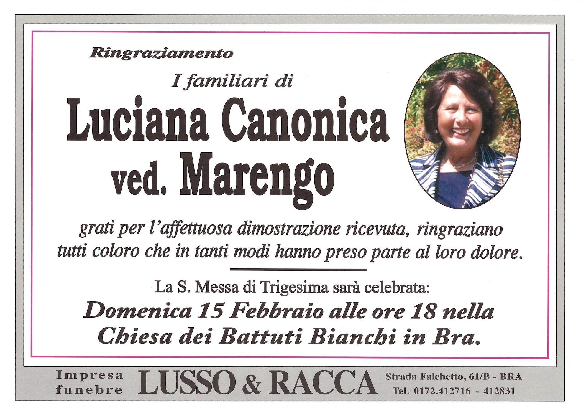I familiari ringraziano anticipatamente tutti coloro che parteciperanno alla cerimonia funebre