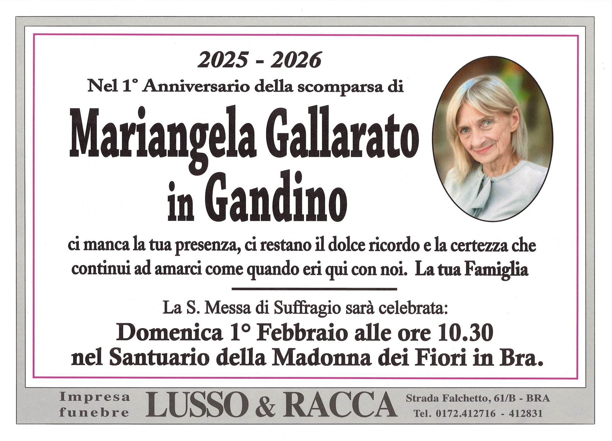 I familiari ringraziano anticipatamente tutti coloro che parteciperanno alla cerimonia funebre
